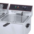 Friteuza dubla, electrica, capacitate 8+8 litri, model de banc, termostat, microswitch de siguranta, dimensiuni 592x410x340hmm, alimentare 220V, putere 2x2.8kW