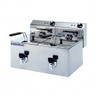 Friteuza electrica, cu doua cuve, 2 robineti pentru scurgere, capacitate 8+8 litri, 2 lampi indicatoare pe fiecare panou, inox, dimensiune 530x420x360, alimentare 220V, putere 2x3000W