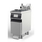 Cu dimensiuni de 400 x 900 x 900 mm, friteuza este conceputa pentru integrarea in liniile profesionale de gatire.