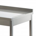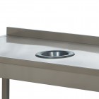 Masa de lucru, cu inaltator la perete, orificiu pentru debarasare resturi, structura inox, dimensiuni: 1200x600x850h mm, greutate 19kg