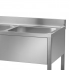 Spalator, cu 2 cuve, inaltator la perete, polita intermediara, inox, cuve antifonate, ventil scurgere si tub prea-plin incluse, orificiu pentru baterie, picioare reglabile, dimensiuni cuva 500x500x300mm, dimensiune (LxlxH mm): 1200x700x850